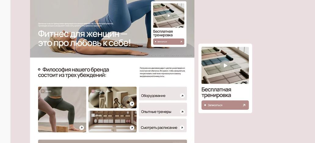 С душевыми кабинами и чистыми раздевалками. Оснащена всеми видами большого и малого оборудования Balanced Body (USA) для группового и индивидуального формата.